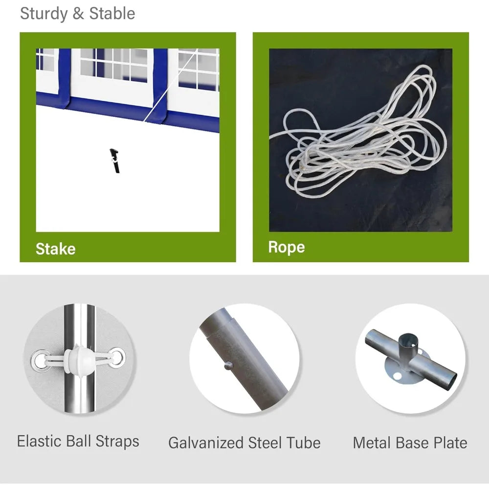 - Spacious footprint covers 5–10 m² with dimensions 240 L × 192 W × 1296 H; blue/white finish complements tents, decor, and branding for your events.