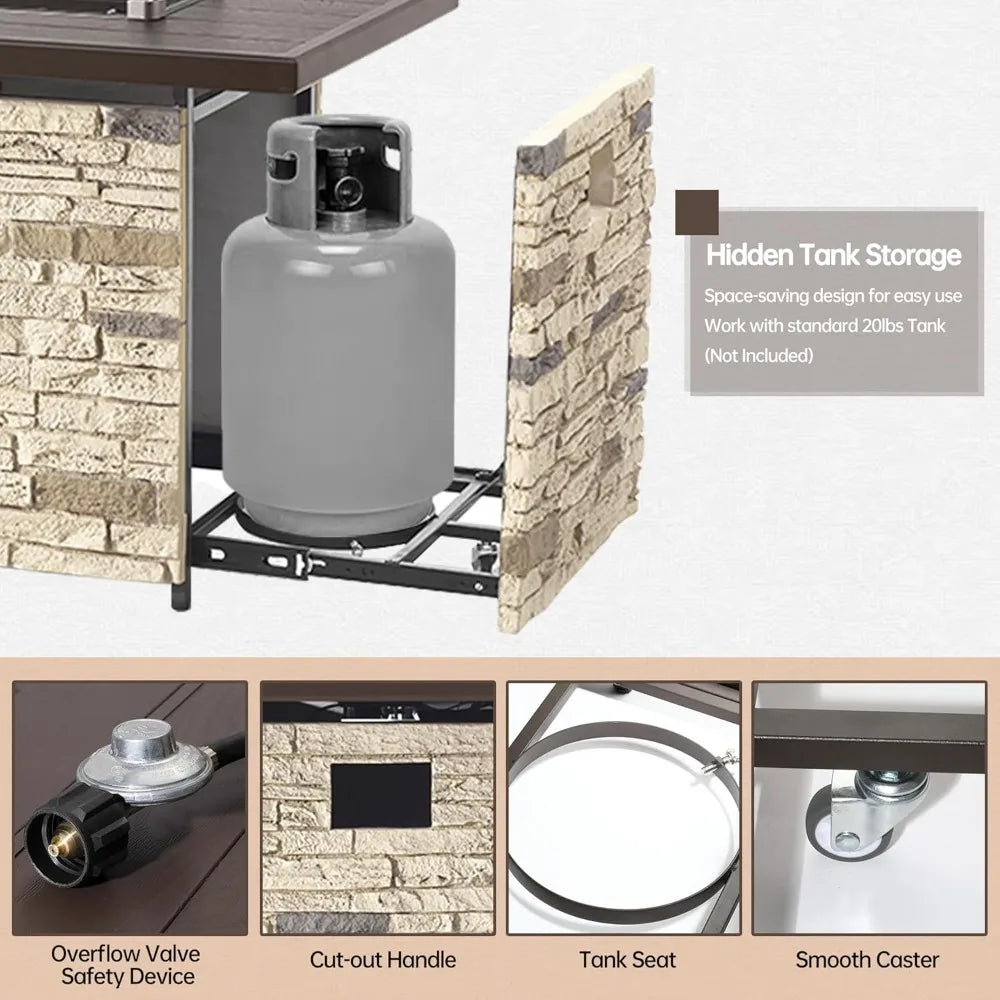 - Durable, stylish build: The 304 stainless steel H-type burner delivers longevity, paired with a faux stone surface made from fire-retardant, UV-inhibited polyurethane to keep your patio looking great.