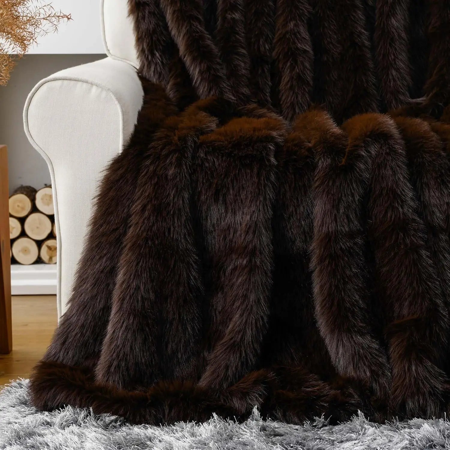 - You get a lush, long-pile faux fur in a rich brown that feels plush against your skin, is hypoallergenic, and offers an eco-friendly alternative to real fur.